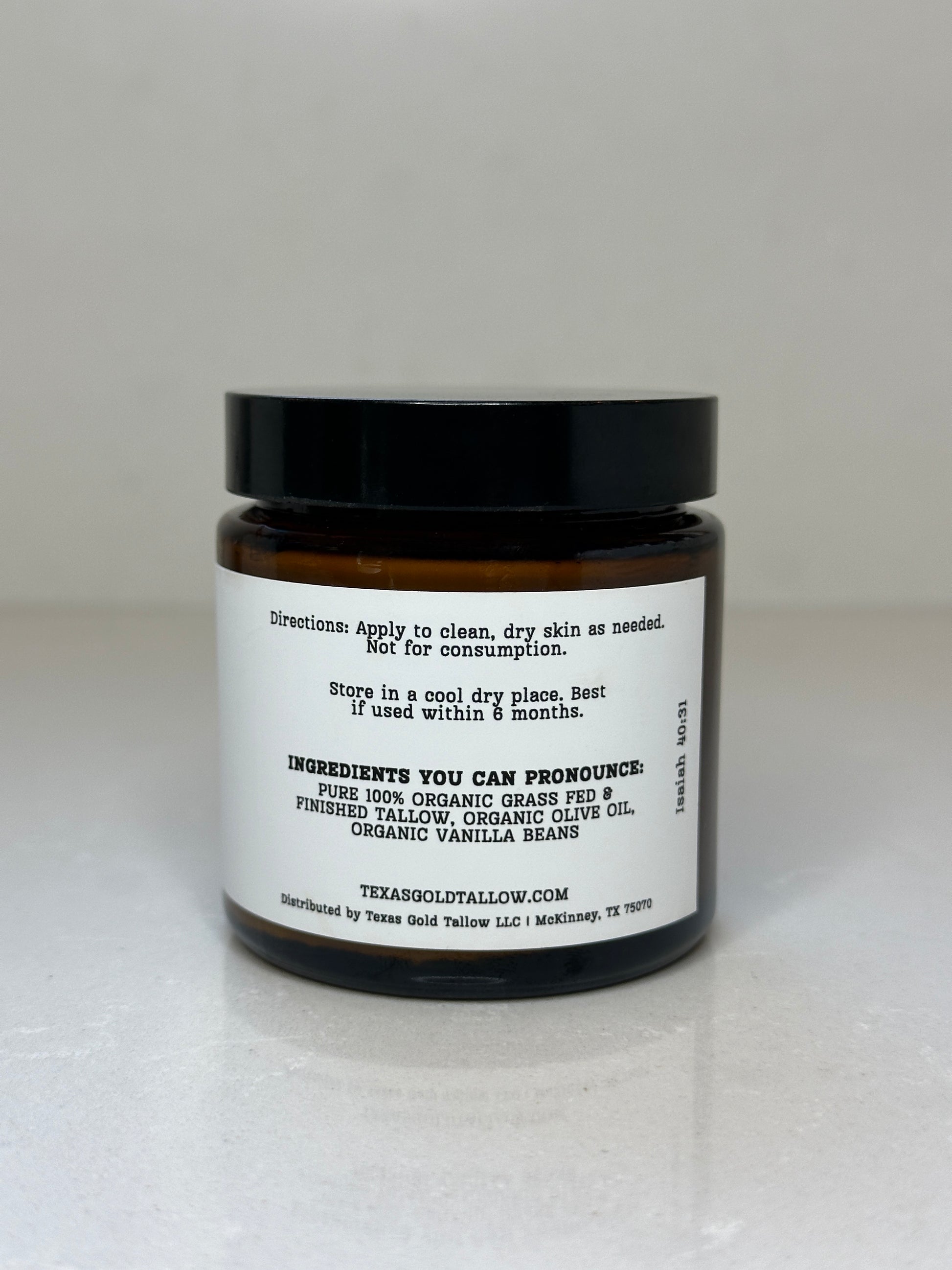 Pure and Simple: Crafted with just grass-fed tallow and real vanilla bean — no chemicals, preservatives, or artificial ingredients.